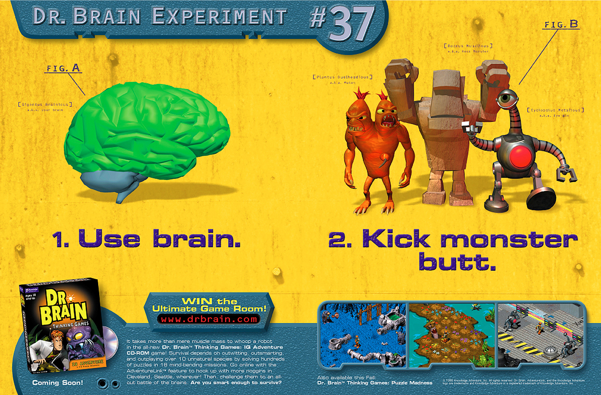 Art direction, copywriting and graphic design of spread ads and marketing materials for Vivendi Universal's edutainment gaming title, Dr. Brain's Adventure Games